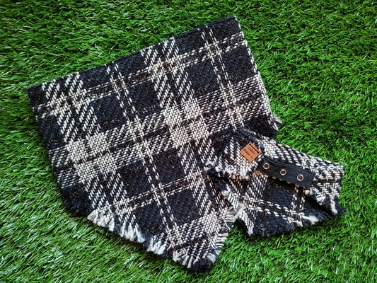 Black and White Plaid Fray Snap On Pet Bandana