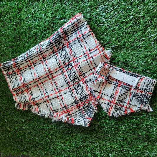 Snow Day Plaid Fray Snap On Pet Bandana