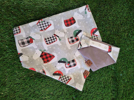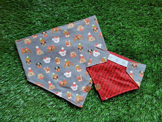 Here are all of our Holly Jolly bandanas. Perfect for keeping warm and in the holiday spirit. These bandanas are size-adjustable, reversible, and no knots means you can worry less about choking!
