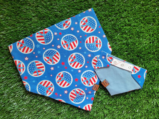 Here are all of our pawtriotic bandanas. Perfect for showing off your American spirit! These bandanas are size-adjustable, reversible, and no knots means you can worry less about choking!